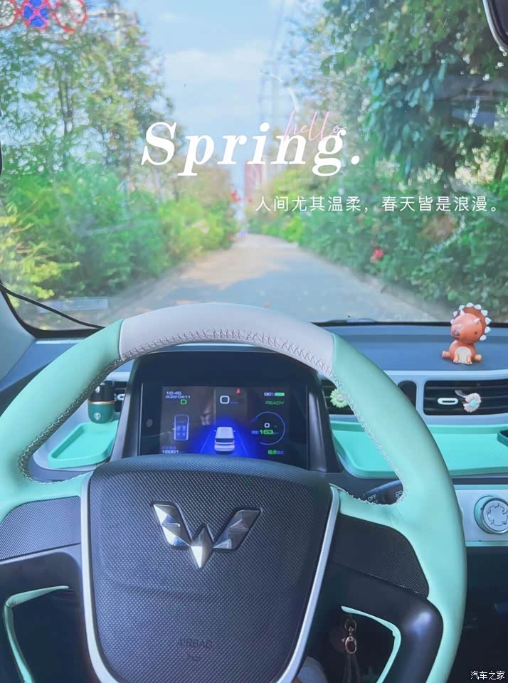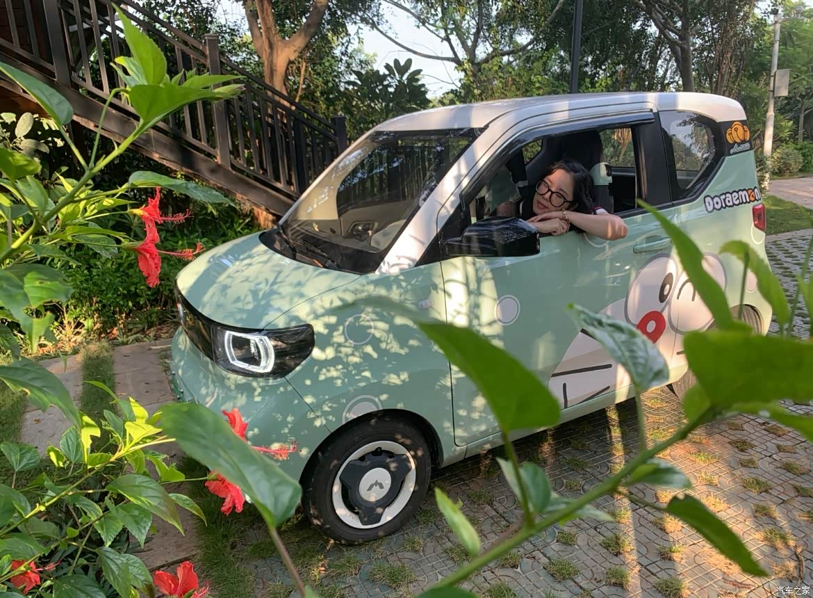 一开始对五菱宏光MINI一代有点心动,直到二代马卡龙版亮相——那抹牛油果绿,简直是夏天本夏!清清爽爽的小清新调调,看一眼就治愈到不行,瞬间被俘获。 后来给它贴了哆啦A梦车贴,萌得犯规。我家娃现在出门必喊“坐猫车”。 天气好时开出去,随便停在树荫下或花丛旁,手机随手一拍都是壁纸级大片,这颜值真的没白爱~