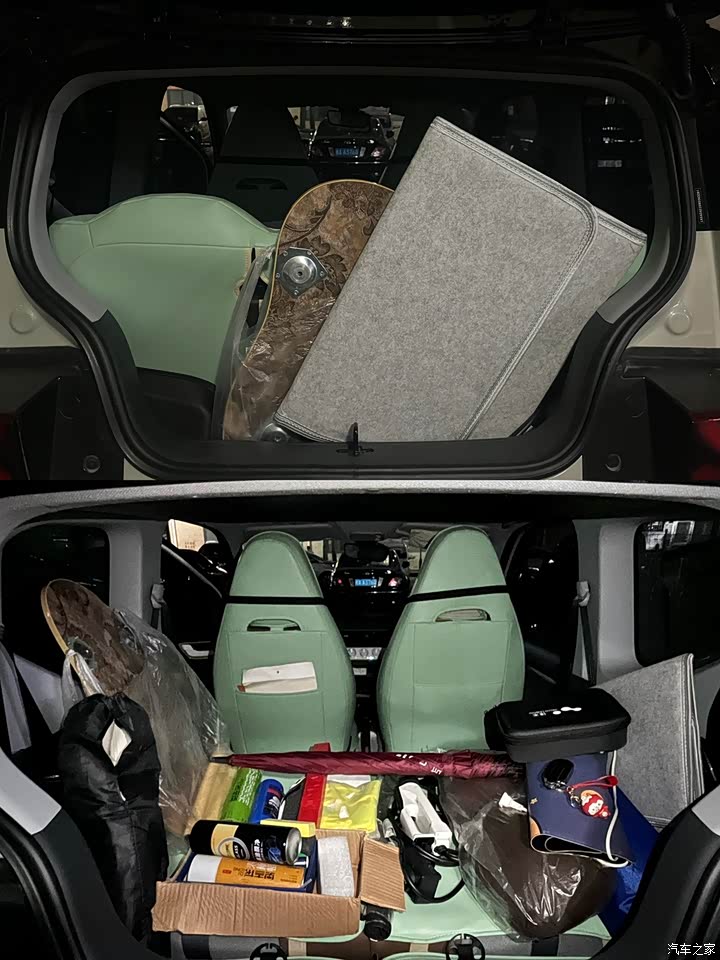 * 乘坐灵活: 对于日常单人通勤绰绰有余。偶尔朋友小聚,塞下四人也不成问题。后排空间对小孩非常友好,成年女性尚可,但成年男性会稍感局促。 * 储物惊喜:别看后备箱仅“巴掌宽”,合理规划后收纳能力惊人!露营椅、野餐垫、折叠桌轻松容纳;搬家时更是化身“超级小能手”,表现超乎预期!