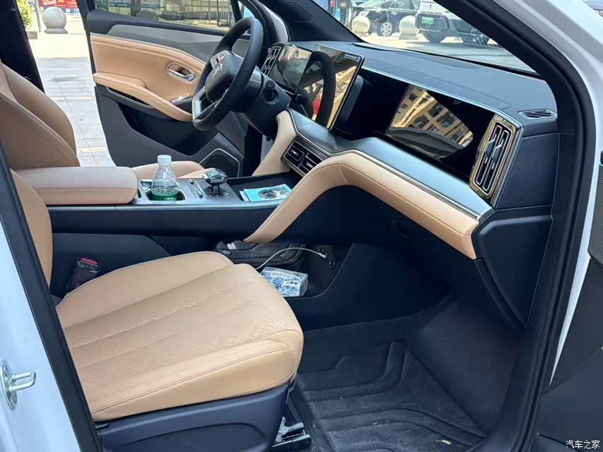 内饰整体设计简洁干净,中控处就一个大屏承担了整车的设置,减少了很多的物理按键。