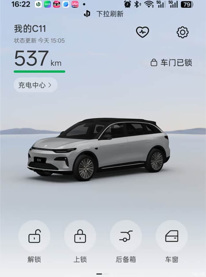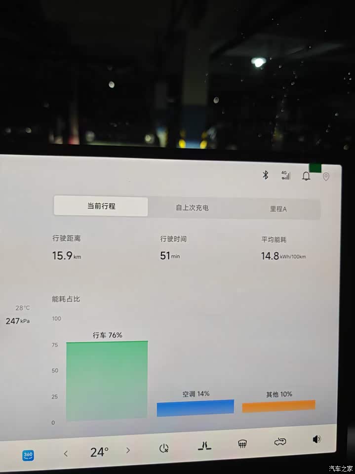 续航目前动态显示537公里,第二次充满电后显示。标称的640公里续航,实际夏天最热的时间开空调城区应该450-500,春秋能跑到500以上,高速还没跑过,过几天跑了再看看。
