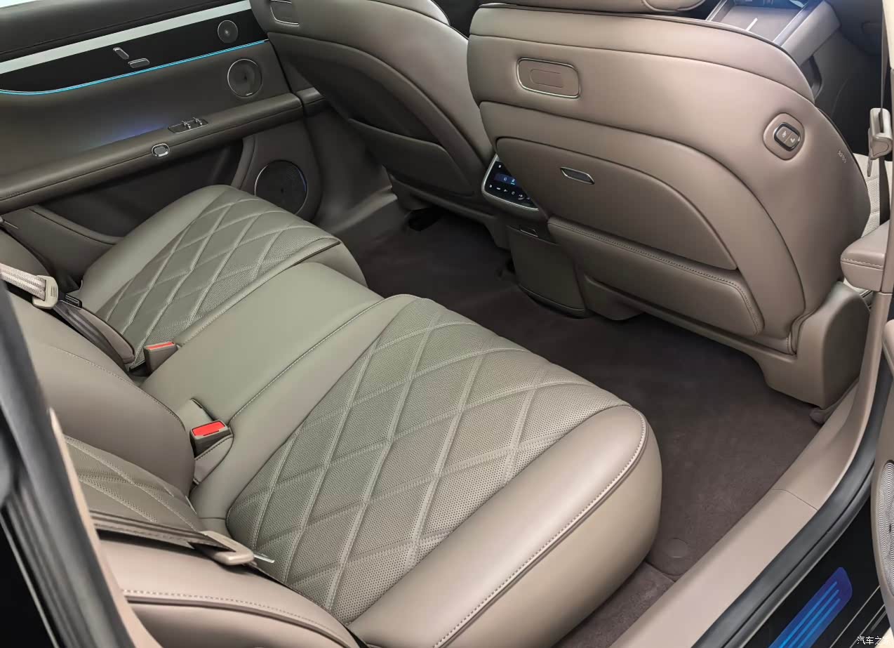车设计看上去既大气稳重,又略带点科技未来感,隐藏式门把手和无框车门,令它整个侧面轮廓,显得特别优雅动感,远看近看都气场十足。