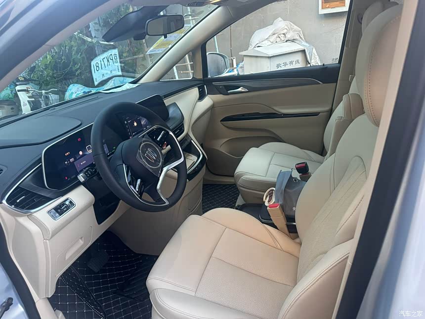 内饰的颜色刻意选择了云柔米。当时下定的时候还没有现车。属于闭眼订车开盲盒了。来车之后比较了棕色,颜色稍微浅了一些。不是很明显,总体来说非常适合家用。这个颜色打理起来可能没那么容易。但是看起来还是很好看的