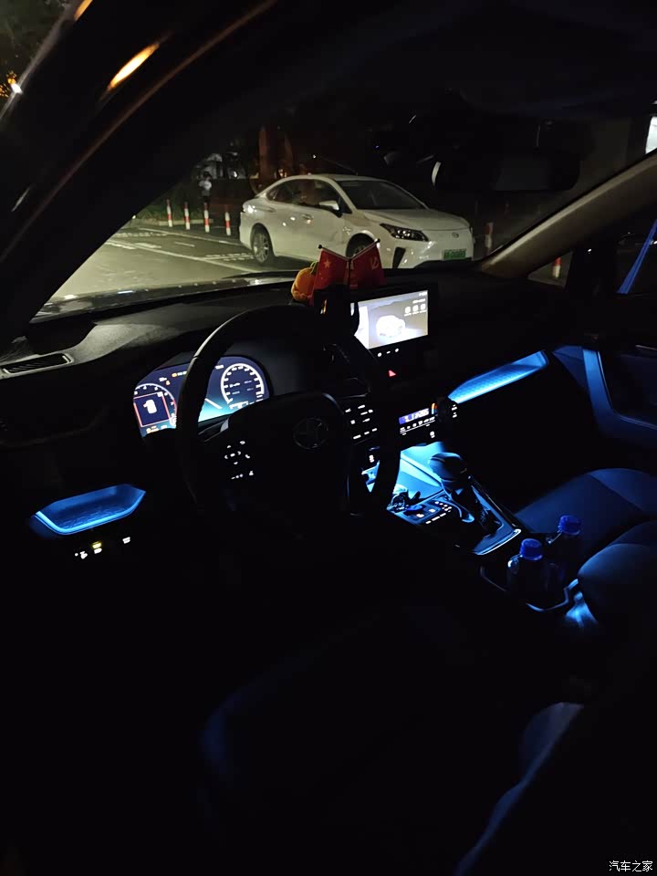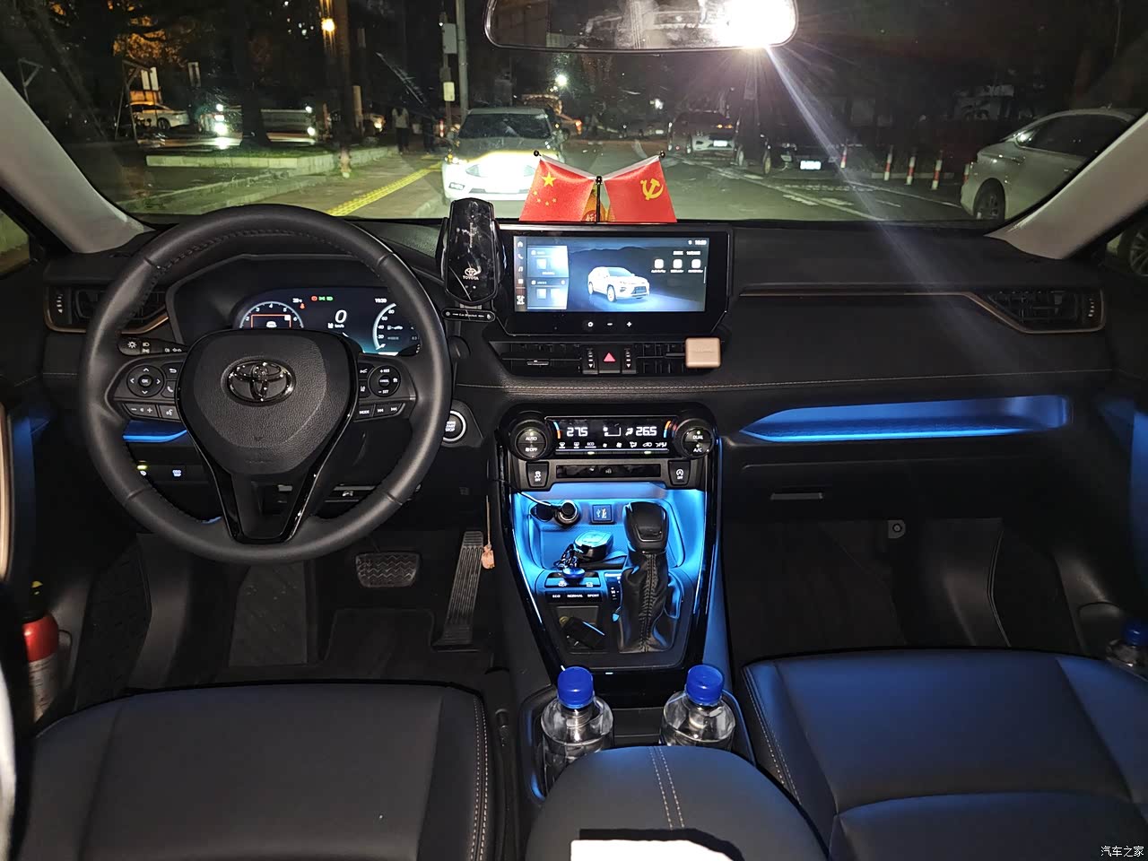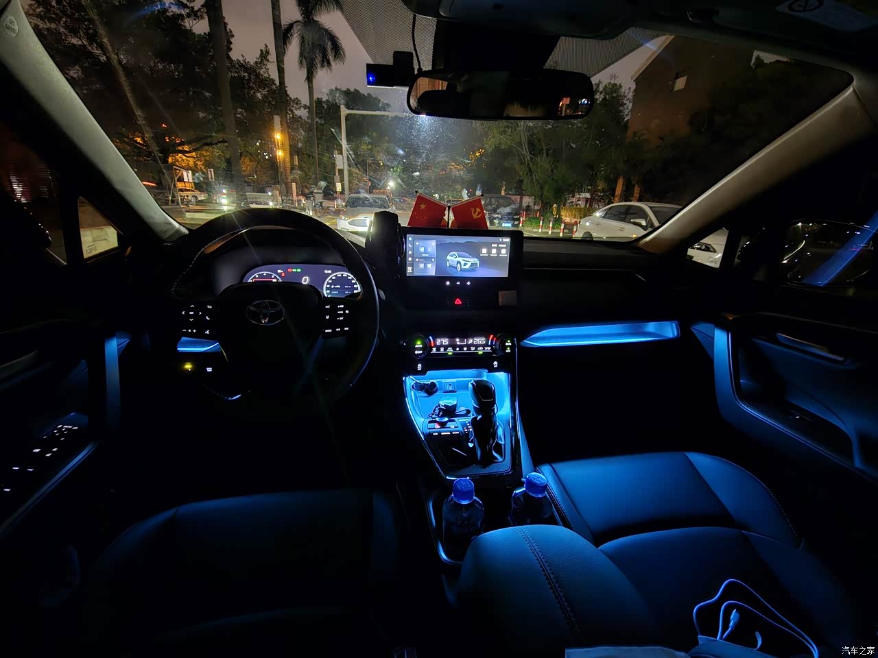 24款的内饰变成了铜色装饰,大气上档次,也用了很多钢琴烤漆装饰,通过自己加了氛围灯,整车氛围立马就提升了