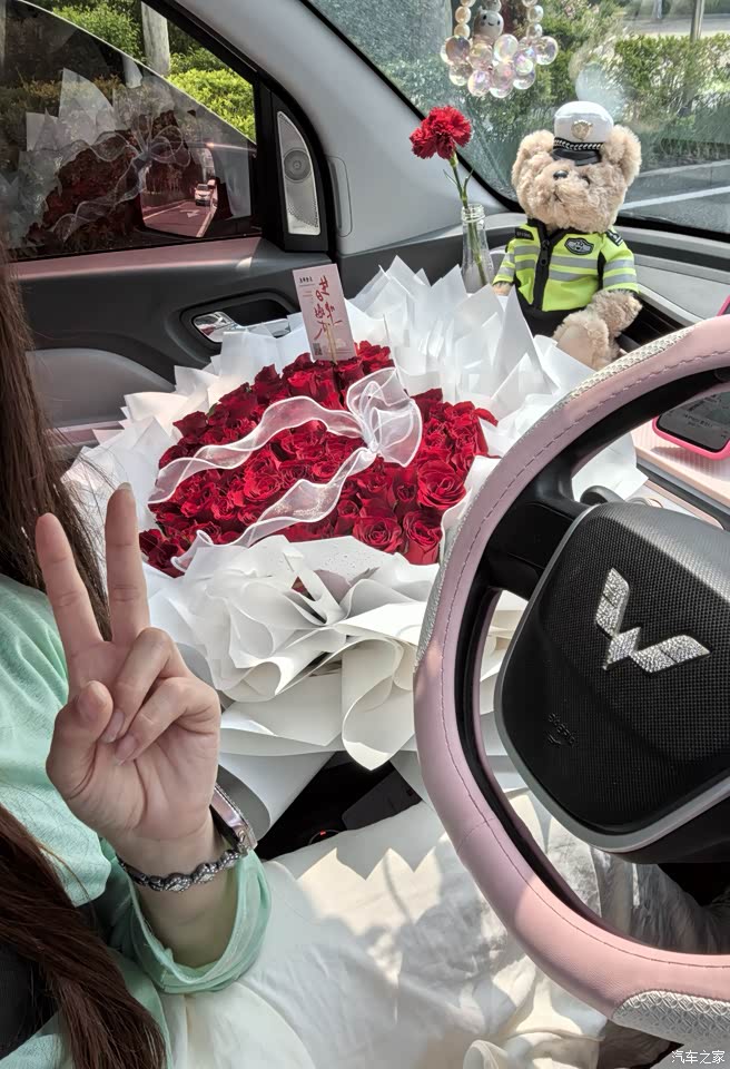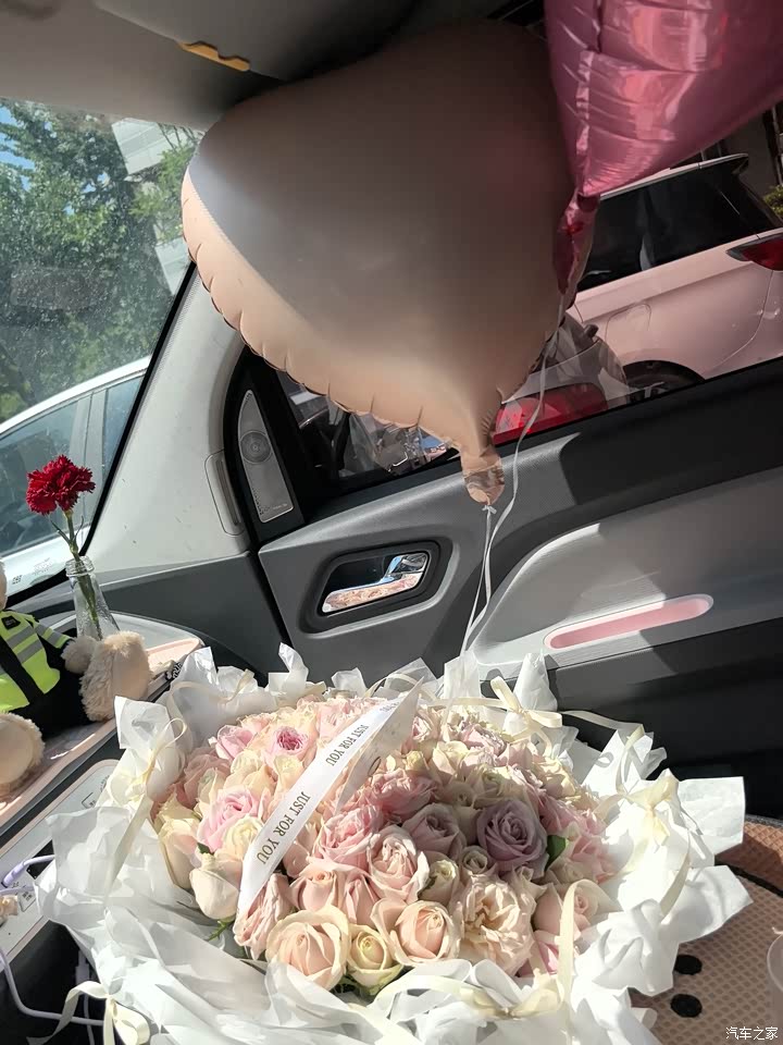 坐进车里,内饰走的是简约风,没有花里胡哨的设计,但中控台干干净净,放个手机支架、摆只小熊玩偶刚刚好。没事的时候我还会开着它兼职给别人送花! 座椅是织物的,夏天不闷汗,冬天套个毛绒垫也暖和,最戳我的是车门上的小储物格,刚好塞下我的折叠伞和口红,细节处藏着贴心。