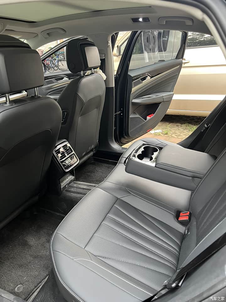 第二排空间很大,跷二郎腿绰绰有余,做三个人也不用急,后排独立空调,腿部空间也大,行政轿车YYDS,还有老板键,不愧是行政级轿车