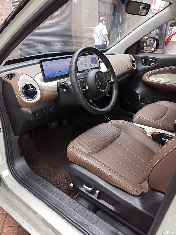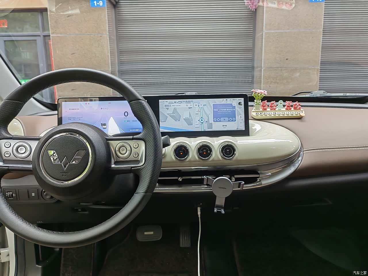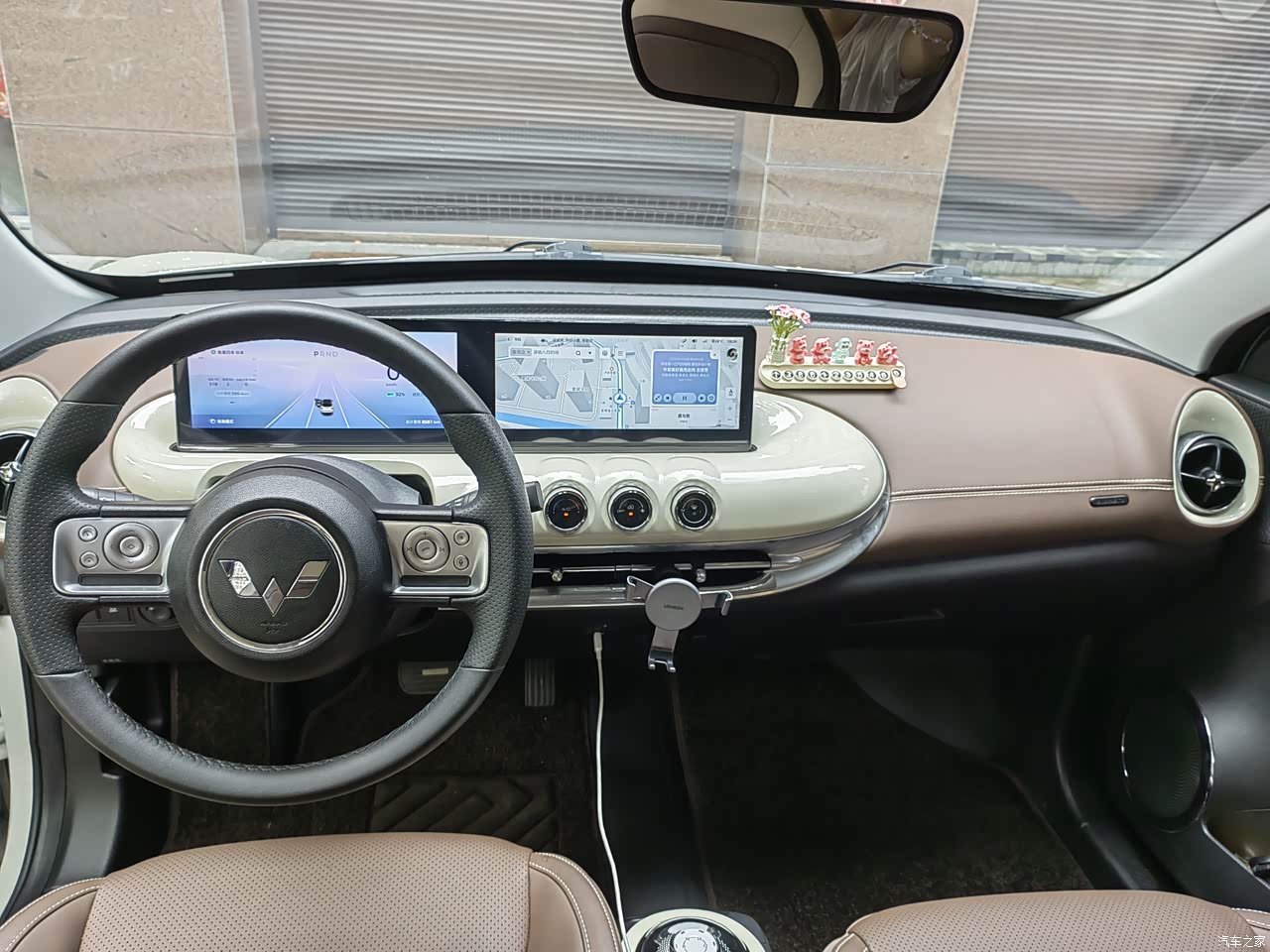 车的内饰我是真喜欢,云朵一样的中控台真的太喜欢了,简直就长在了我的审美点上,然后它这个车的前排是通的,所以特别方便人可以从副驾直接到主驾驶简直太方便了,小果子的语音功能也跟强大,比如要开空调就说你好小菱打开空调,就行可以调节大小,想听音乐就说你好小菱我想听音乐,简直太方便了,而且这个语音很灵敏,车子带自动座椅调节我也很喜欢,这样我和家里人开车调节座椅就不像以前的那么费力了,还有它的自动驻车功能是我最喜欢也是我觉的很实用的地方,遇到红绿灯时只要踩刹车停车后就可以把脚放开了太舒服了,由于小果子的车身短所以好开好停,简直就是城市代步的香饽饽!补充一点车机也很好用,和自己的账号链接,比如朋友微信给你发了定位你在微信打开,就可以直接投到车机上,真的太香了!用了快一年了电池也没有发现耗电很快的现象,跟新提车时差不多!果然五菱造的是人民想要的车!
