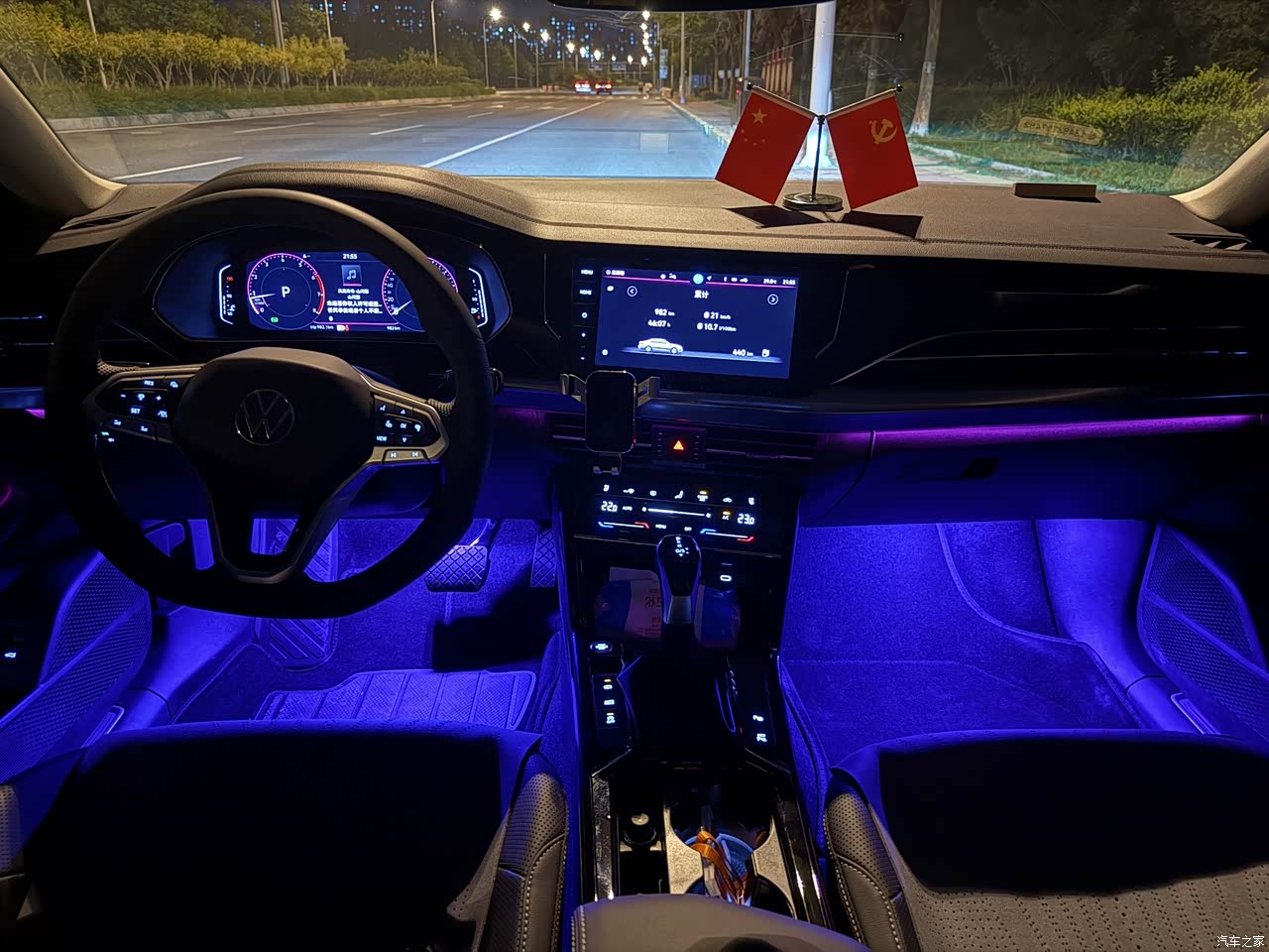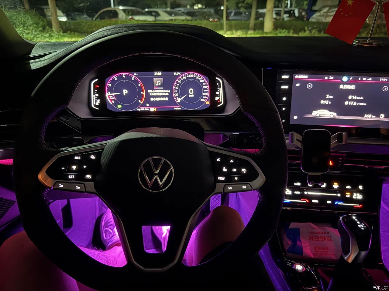 内饰的话啊,大众吧,总体来说就是一个简约风格,不像国产新能源那样,车辆内饰那么丰富,没有那种大屏,我买的是龙耀的车型,内饰和配置方面相对来说还丰富一些,配备了一个室内氛围灯(夜晚比较明显)和无线充电,再有就是虽然没有无重力座椅,但是这款车的座椅还是比较偏软的,坐久了也不会累。