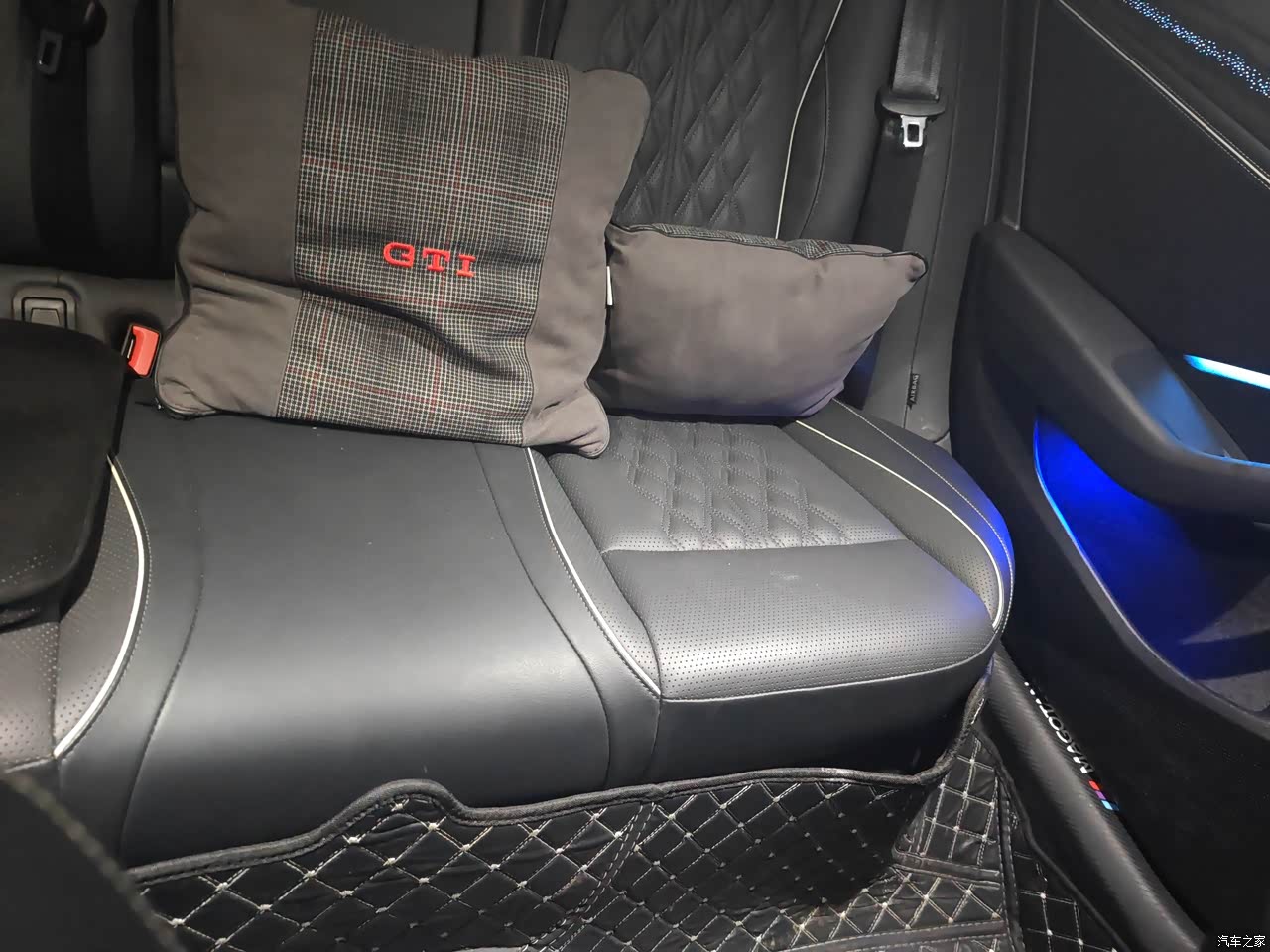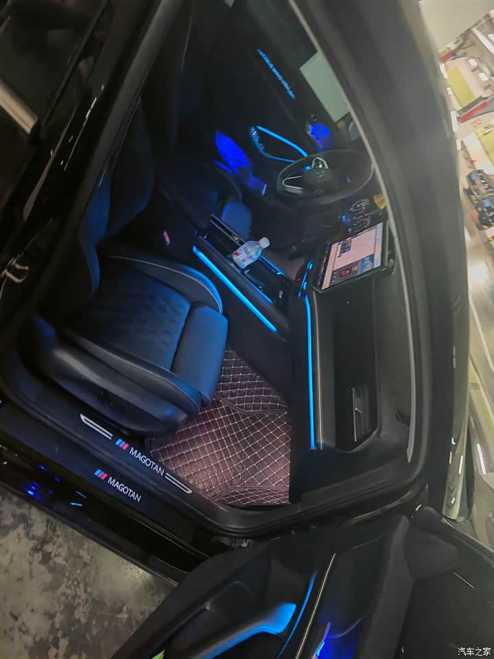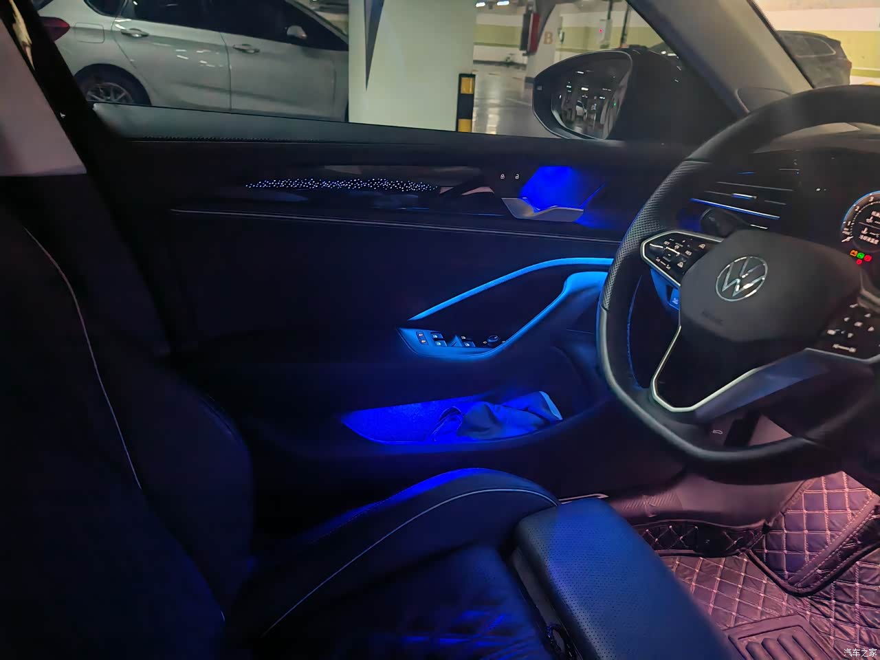 迈腾B9的内饰以“数字座舱”为核心,将科技感与豪华质感演绎得淋漓尽致。中控台采用对称式设计,贯穿式空调出风口搭配15英寸2K中控大屏+10.25英寸全液晶仪表+11.6英寸副驾娱乐屏的四屏联动系统,配合HUD抬头显示,形成极具未来感的交互矩阵。车机搭载高通骁龙8155芯片,操作流畅度媲美高端智能手机,支持语音控制、CarPlay互联及手机APP远程操控,科技体验拉满。 材质工艺堪称同级标杆:中控台、门板等常触区域均采用软性材质包裹,搭配钢琴烤漆饰板与镀铬饰条,缝线细腻无线头;座椅选用高品质打孔皮质,菱形压花设计提升透气性,触感柔软且支撑性出色。 氛围灯:光影间的仪式感 车内配备30色可调氛围灯,支持随音乐律动、驾驶模式联动等动态效果,夜间点亮时通过门板透光饰条与中控台氛围灯带营造出环抱式光影氛围。迎宾光毯功能在解锁车辆时自动投射品牌LOGO至地面,仪式感十足。 座椅通风:夏日出行的“清凉伴侣” 前排座椅标配通风功能(高配车型后排也支持),通过座椅内部风扇快速带走热量,配合打孔皮质面料,即使在高温天气也能保持乘坐干爽。主驾还支持12向电动调节+4向腰部支撑,搭配加热与按摩功能,长途驾驶疲劳感大幅降低。