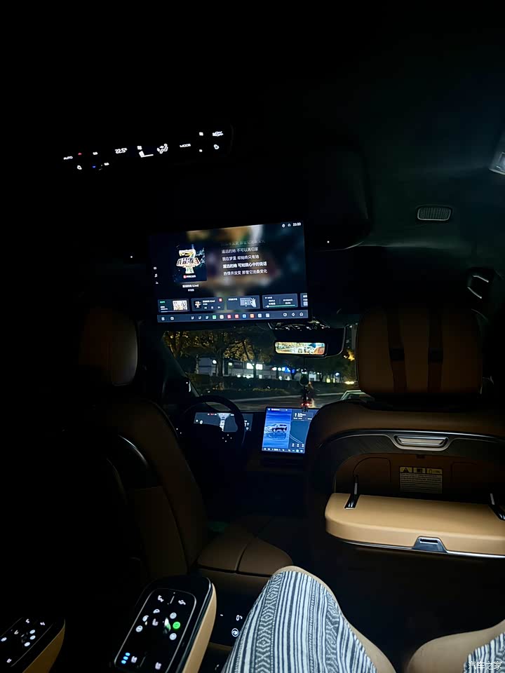 超大的hud抬头显示,这开车主驾位置就会很安逸舒服。静态感受升级最大的是座椅,坐垫和靠背用料都太柔软太厚实了。二排腿托可以几乎放平,孩子睡觉肯定更舒服。如果009二排座用料和椅舒适度在我心目中是第一,高山8二排座椅绝对排第 二。 二排座椅上的实体按键学习成本低易于上手,老人孩子很快就能学会。反之那种二排座椅带屏幕的,总感觉反应慢半拍,还给盯着屏幕来回找点哪里,点错了不知道怎么取消。 第三排座椅真的是最大的惊喜,可以电动调节前后,老款只能手动推,座椅很厚实超舒适,目前试过的mpv里第三排舒适度高山8排第一,超过所有新能源 mpv。 三排的玻璃面积也很大,保证了三排的采光和通透性,而且有遮阳帘。 冰箱绝对所有新能源mpv里空间最大的,双层冰箱,前排用上层,后排用下层。