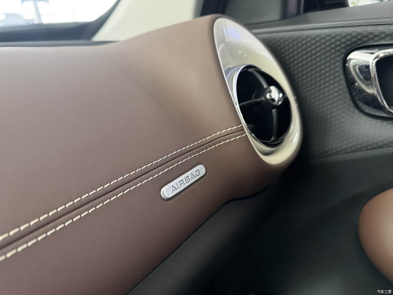 内饰是我喜欢的焦糖色,中控台的造型设计得也很有层次感和科技感。空调出风口造型独特、个性化十足,且具有较高的辨识度与豪华气息。