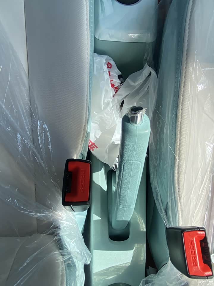 塑料感是挺重的,。 摸哪儿都硬邦邦,。 但耐造啊!娃在后排吃零食掉渣,拿湿抹布一擦就干净。我选的那个浅蓝内饰,看着清爽,就是容易脏,得勤擦。