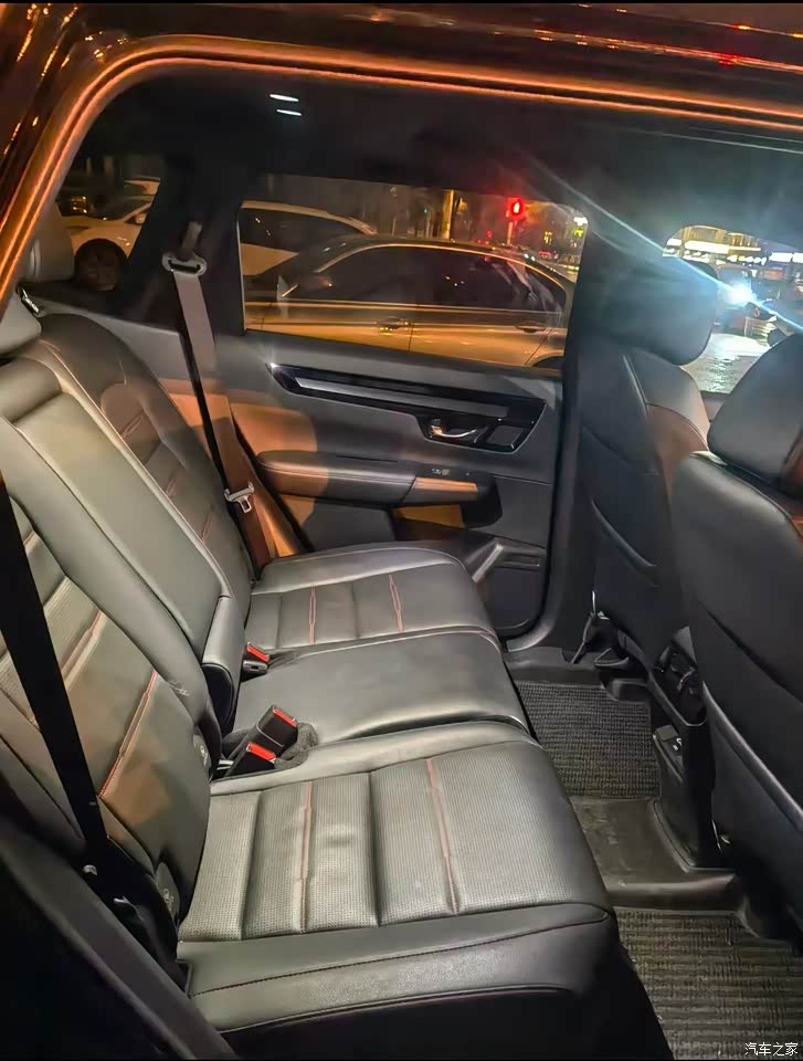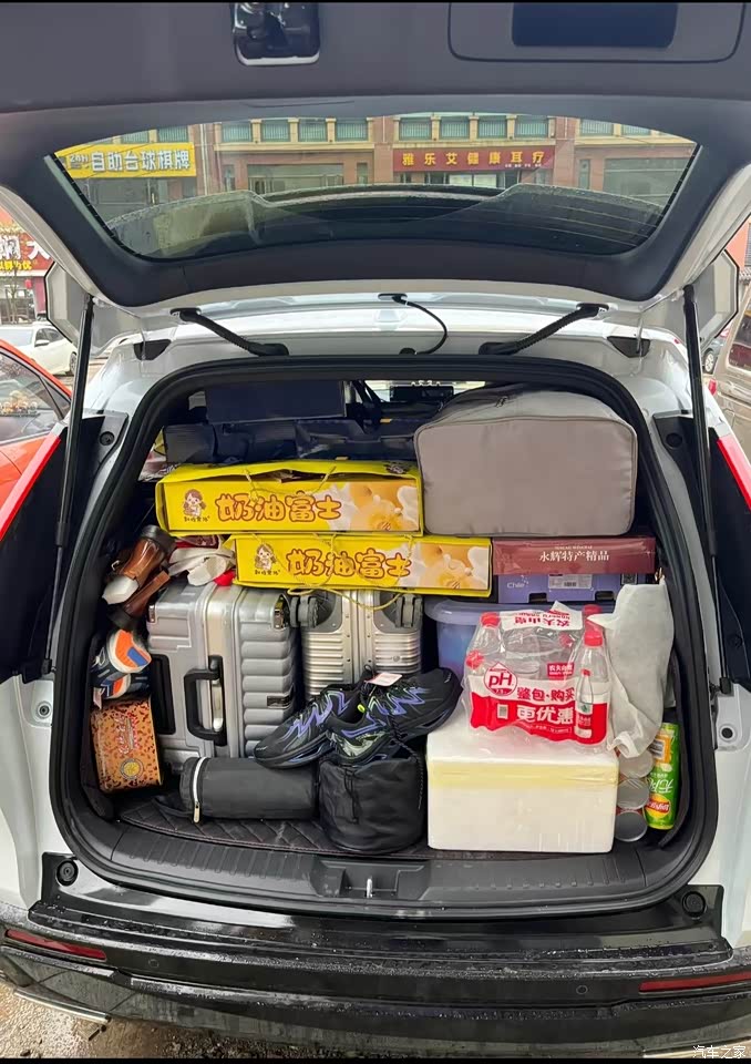 空间是我最满意的点,后排坐几个大人不挤,中间地板是平的,脚随便放,腿能伸直不顶膝盖。后备箱更不用说,平时放婴儿车+两个登机箱还有富余,对有娃的家庭太友好了。