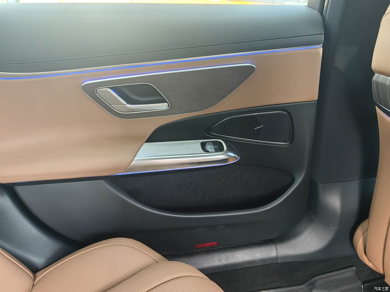 后排宽敞,轴距超3米,腿部空间比标轴E级更充裕,身高180cm坐后排仍能轻松翘二郎腿;门板储物格、中控杯架、扶手箱深度足够,手机无线充电位也很顺手。