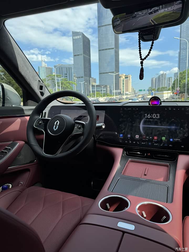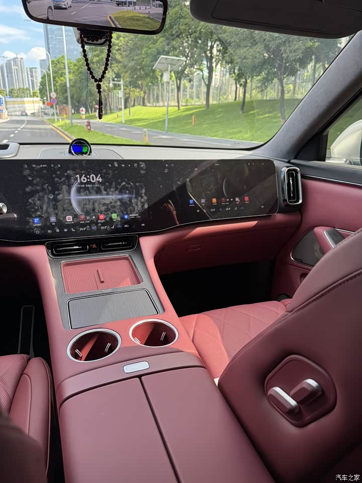 选了8000元的星云红内饰,整体质感很好,顶篷之翻毛皮的质感,全车氛围还是挺高级的。