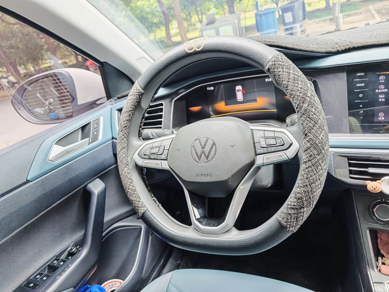 首先方向盘我握着非常舒服,不是那种轻飘飘的感觉,而是有点重力感的,我很喜欢。但是显示屏不是很喜欢因为太小了,再一个就是杯子的地方还是以前老款的样式,如果能再更进些就更好了
