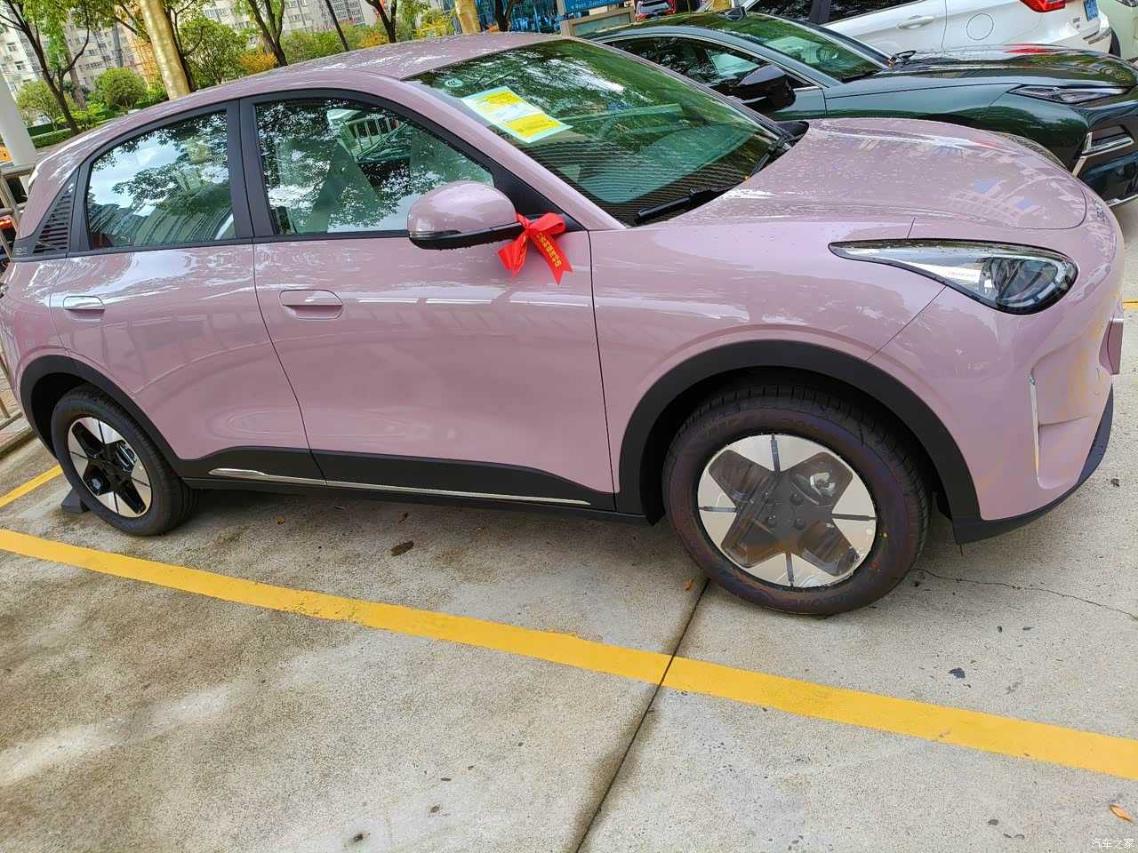 💖外观: 我提的是冰莓粉,搭配微笑前脸和天使之眼,兼职萌化了我的少女心,这个颜色简直太适合女生啦,还有幸运的四叶草🍀轮毂,也非常的有设计感,开在路上回头率超高!