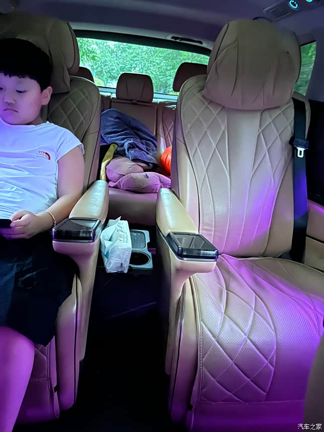 内饰满满的豪华感,真皮座椅触感柔软,包裹性强,长时间驾驶也不累。15.6寸中控大屏加二排头枕屏,科技感十足,孩子在后排看动画片很开心 。宽温域冰箱很实用,冬天能温奶,夏天能冰饮料。内饰的做工用料是相当考究的,尤其是中控台上面的钢琴烤漆面板看起来就特别的有档次,而且门上面的木质纹理也很高档