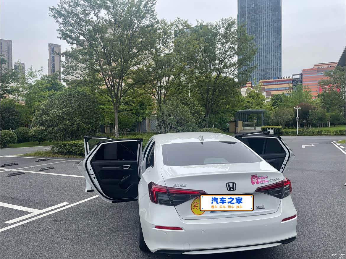 一开始去看车准备买大众的polo的,后来发现还是思域的空间大一些,后备箱空间绰绰有余。我老公180cm身高,坐后面也不觉得拥挤,腿可以放下,从后排看前排,空间宽敞。