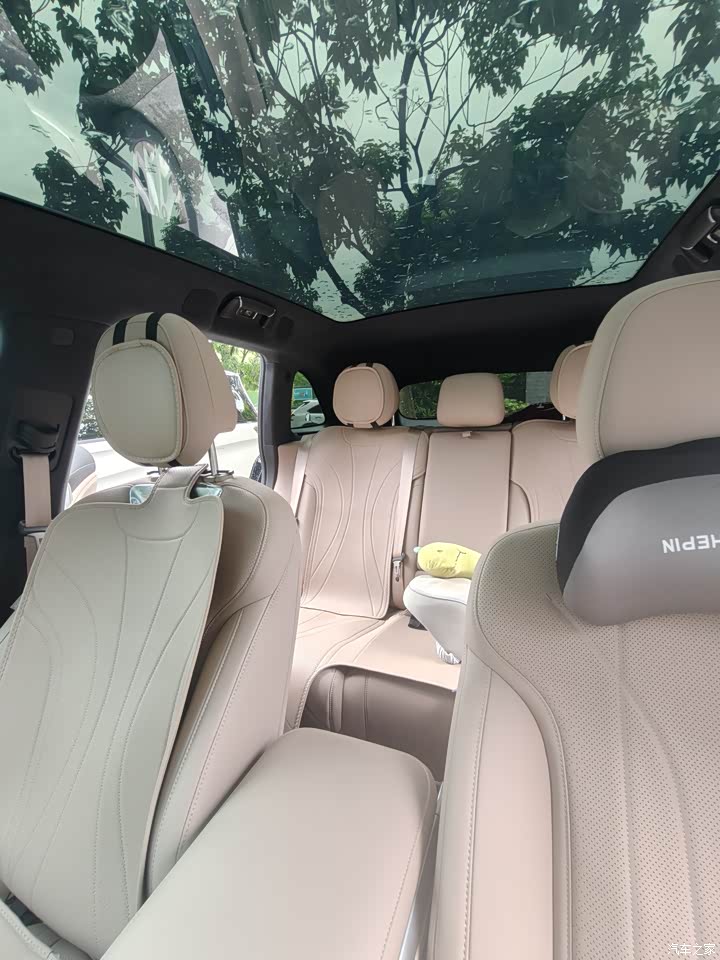 Nappa真皮的质感真的很舒服,每个座位都有按摩,就是怕弄脏了。 双屏膜,让副驾经常被争。看看电视,玩游戏都丝滑完成!