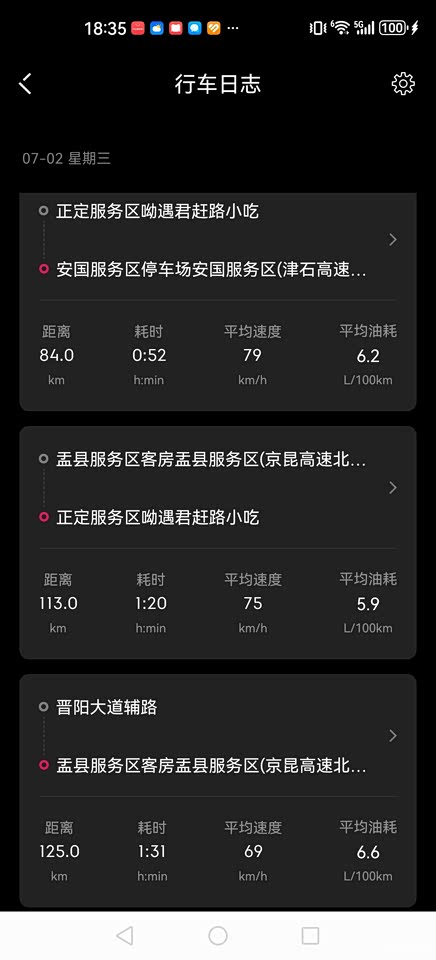 在高速公路行驶,平均车速控制在75公里左右时,油耗相对比较低,有一次百公里油耗低到5.9!