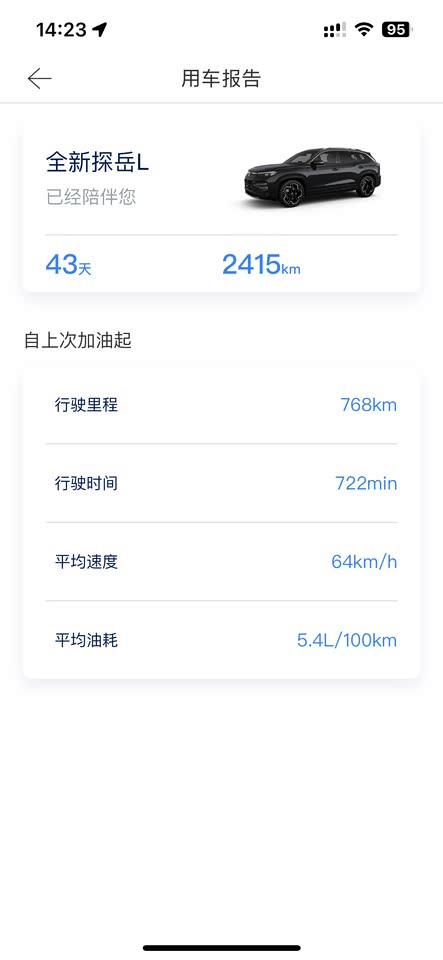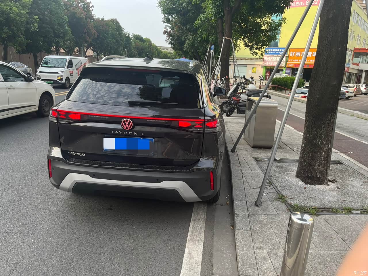 提回这台探岳L300两驱精英版一个多月,跑了趟长途,也经历了日常通勤的拥堵,是时候来聊聊这位新伙伴了。当初选择它,看中的就是大众的扎实口碑、实用的空间和帅气的外观。一个多月下来,它确实没让我失望,下面详细说说感受。 第一眼就被这黑色吸引了,官方叫“锰石黑”?确实够亮眼,洗干净后在阳光下特别有质感,透着点稳重又不失力量感。前脸是典型的大众家族设计,横条格栅和大灯连为一体,拉宽了视觉感受,看着挺大气。精英版的轮毂是18寸的,样式比较简洁,配黑色车身倒也不显小气,属于耐看型。侧面是我最喜欢的角度,比例很协调,腰线从翼子板一直延伸到尾灯,平直有力,让整个车身显得很修长。作为一台中型SUV,探岳L的尺寸在同级里算是有优势的,看着就挺有存在感,黑色的确显气场,朋友见了都说这“黑武士”挺酷。 空间绝对是探岳L的强项!前排调整好我的驾驶位(身高178cm),后排腿部空间依然非常宽裕,跷二郎腿都没问题。重点是后备厢,太能装了!深度和宽度都很可观,日常超市采购、婴儿车、周末露营装备(帐篷、折叠桌椅、大收纳箱)轻松塞下。后排座椅支持4/2/4比例放倒,放倒后几乎纯平,搬运大件家具或者当临时床都行,实用性拉满。 后排坐三个成年人也不会觉得特别拥挤,中间地台有凸起但不算太高。座椅填充物软硬适中,支撑性不错,长途乘坐家人反馈比较舒服。车门板、中控下方、扶手箱的储物格设计也很合理,手机、水杯、零碎物品都能找到合适的位置。 内饰就是标准的大众风格了,精英版以实用为主。中控台布局清晰,操作起来很顺手。大面积的皮质包裹,手感很舒服,做工还算扎实,接缝均匀,没有廉价感。方向盘是真皮的,握感舒适。仪表盘是大尺寸液晶屏,信息显示清晰直观。 12英寸的中控屏(精英版)尺寸适中,支持CarPlay和CarLife,这点很实用!连上手机导航、听歌都很方便。原厂车机系统反应速度中规中矩,功能满足基本需求。空调是手动的,旋钮手感清晰,操作直接。整体内饰氛围属于简洁耐看型,没有太多花哨,但该有的功能都有,上手无难度。 动力与油耗方面:平顺为主,惊喜在油耗。 我这款是300TSI,1.5T发动机配7速湿式双离合。动力输出以平顺线性为主,城市里开很轻快,起步、超车够用。高速上100km/h再加速能力也够用,随踩随有,稳稳当当巡航很舒服。双离合变速箱在低速1-2档偶有轻微顿挫,但非常轻微,不影响体验,大部分时间换挡都很平顺。 重点说说油耗!这是最让我惊喜的地方! 用车一个月,跑了大概2400公里,市区、郊区、高速混合路况都有。最惊艳的是跑高速!定速巡航设定在100-110km/h左右,表显油耗最低跑出过 5.2L/100km!*实际测算下来也相差无几。这对于一台尺寸不小的SUV来说,真的非常省了。市区拥堵路况下,油耗会上升到9-10L左右,属于可以接受的范围。综合下来,对于这个体型的车,我个人非常满意。 一个多月朝夕相处,这台黑色的探岳L300两驱精英版给我的印象就是均衡、务实、可靠。它没有特别炫酷的配置,但核心的驾乘空间、动力油耗表现都相当扎实。外观大气耐看(尤其黑色),空间宽敞能装,内饰实用易上手,油耗表现超出预期(特别是高速)。精英版的配置满足日常家用完全足够。