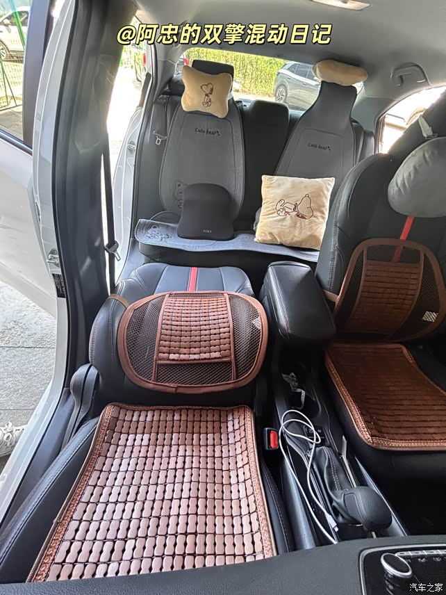 空间表现一般:我身高1.8m,前排没问题,但后排头部和腿部空间略显局促,短途代步可以,长途舒适性一般。 由于有停车在服务区休息的习惯,我将副驾驶DIY改平了,可以查找@阿忠的双擎混动日记查看教程