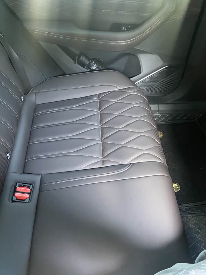 这款车的内饰颜色是我比较喜欢的棕色 看着很大气 内饰的储物空间也比较大 科技感比较十足 主要是车顶部分都是翻毛皮的 摸着特别舒服 座椅皮质摸起来很舒服很光滑