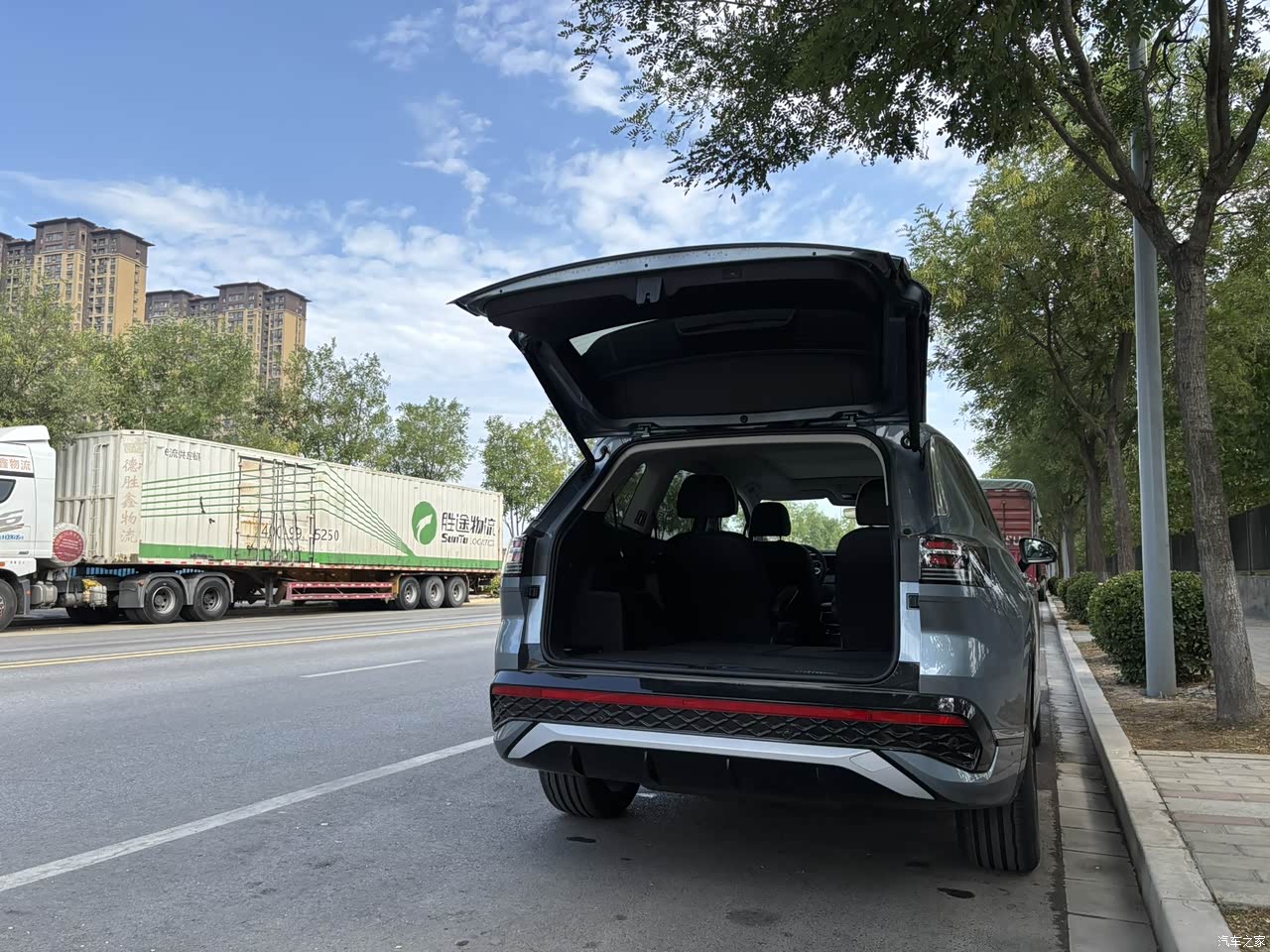 当初看车时一眼就相中全新揽镜的空间,5米的车长,近3米的轴距 。我身高179cm,调整好驾驶座后,第二排腿部还有两拳半,第三排坐170cm以下的成年人短途没问题。后备箱在三排全开时还能放登机箱,放倒第三排后直接变身小货车,搬家、露营毫无压力。 话说自从买了全新揽镜,孩子每周假期都吵着去露营~全家更加热爱拥抱大自然!