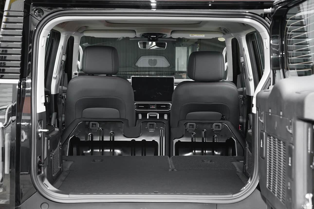 1.前脸 采用硬派越野风格设计,大尺寸进气格栅“JETOUR”发光标识镶嵌其中,极具辨识度。两侧方正大灯组内部为矩阵式布局,搭配粗壮的前保险杠和底部银色护板,展现出强烈的硬派气息。 2.车身侧面 线条流畅笔直,宽大的黑色轮眉向外凸起,19英寸多幅式铝合金轮毂搭配越野AT胎,霸气十足。悬浮式车顶、银色行李架的设计,既增添了时尚感,又提升了实用性。 3.车尾 设计简洁硬朗,竖向排列的尾灯造型独特,内部LED灯带点亮后辨识度极高。外挂式备胎不仅实用,还为车尾增添了一份野性,与整车的硬派风格相呼应。