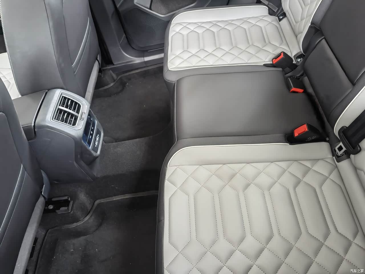 车内空间大,有全景天窗的话看上去车内空间更大了,实际前后排坐着都比较宽,三人坐第二排没有拥挤感,毕竟也是一台中型SUV,后背箱容积看上去还可以,还没放过很多东西。
