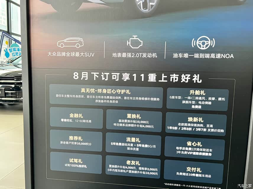 目前8月份下单有11重好礼 我就拿四驱至尊版来算,26.99万的价格,厂家补贴10000元。 如果是一汽大众本品牌还能补贴4000.相当于补贴14000。 保险价格是7000元、上牌费用是1000元、购置税是23000元 我是没有本品补贴,只能拿10000万的厂家补贴,补地价就是29.09万元!