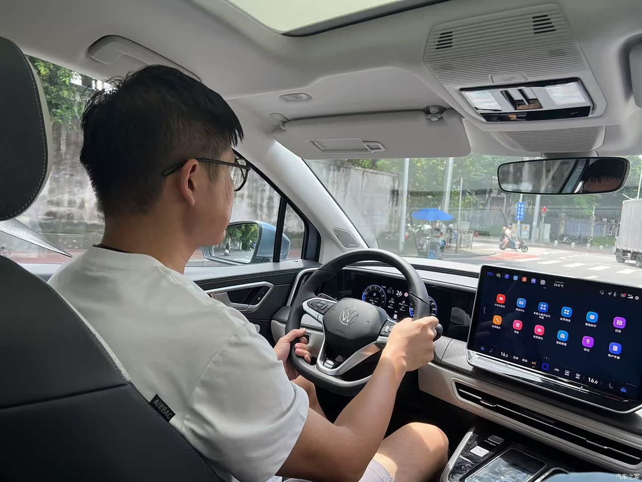 驾驶感受这块还是挺不错的,尤其是刚上手的那一刻,方向盘是特别轻盈的,而且方向盘的设计握起来的手感特别舒服。 提速这块还是挺猛的,这代发动机用的是第五代EA888,它的扭矩达到了400,提速超车特别的带劲!根本感受不到这是开的一台大车。 不过深踩油门的那一刻发动机的噪音还是特别的大。 有人喜欢这种声音,有人感觉有点吵,只能说见仁见智了。 还有它的悬挂调校有点偏硬,快速过减速带的时候颠簸感有点强烈。