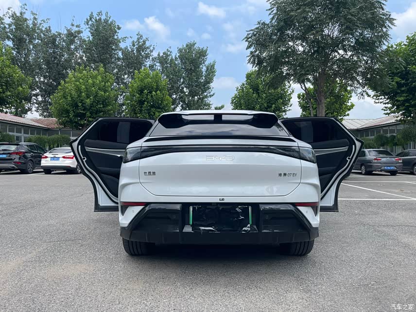 白色高端大气上档次,海狮07 EV继承了比亚迪海洋车系的灵动气质。前脸设计非常漂亮,采用了封闭式格栅与“海浪涟漪”LED灯带的组合,大灯造型酷似跃动的海豹尾鳍,再搭配上车后面发光的BYD字母标志,夜间行驶时极具辨识度,符合年轻人的审美。