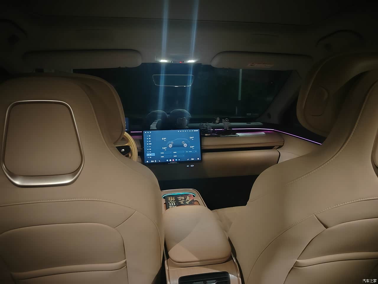 选装棕色内饰,真皮座椅,前排主驾座椅通风加热。副驾女王座椅通风加热按摩。女王座驾有一键放倒,一键按摩,一键收起,12向座椅调节