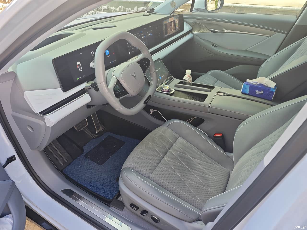 给我的第一感觉就是豪华。大量的翻毛皮材质,摸起来手感特别好,而且看起来也很有档次。中控台的三块大连屏,科技感满满,显示清晰,操作也很流畅。全液晶仪表盘可以显示各种车辆信息,中控屏主要用来控制车辆的各种功能,副驾的娱乐屏,我媳妇特别喜欢,她坐在副驾的时候,就可以用这个屏追剧,打发时间。还有那个9英寸的中控下屏,主要是控制空调和座椅加热、通风这些功能的,用起来很方便。车内的氛围灯也很不错,晚上开车的时候,打开氛围灯,整个车内的氛围感一下子就上来了,特别舒服。