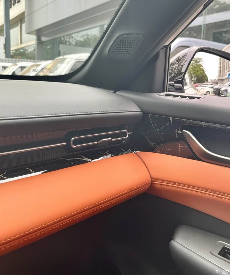 外观与内饰时尚大气,质感满满。外观时尚 动感,线条流畅,大溜背造型超酷,每次停 车都忍不住多看几眼。外观设计很有辨识度, 前脸封闭式格栅搭配贯穿式灯带,晚上一亮,科技感拉满。侧面看,悬浮式车顶和大轮毂运动感十足。不过,车尾的设计就有点见仁见智了,我觉得它的尾灯和后包围的比例不太协调,看着有点头重脚轻。内饰简约大方,中控 大屏功能丰富,操作顺手。橙色的内饰力度有质感,档次非常高,很运动时尚。