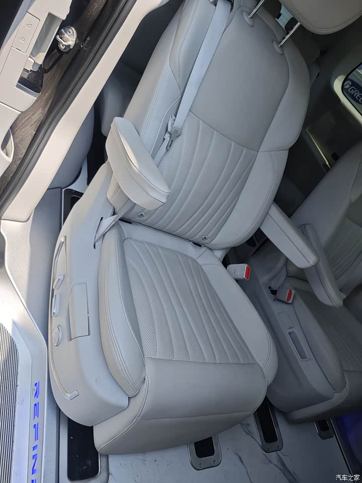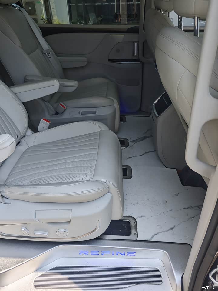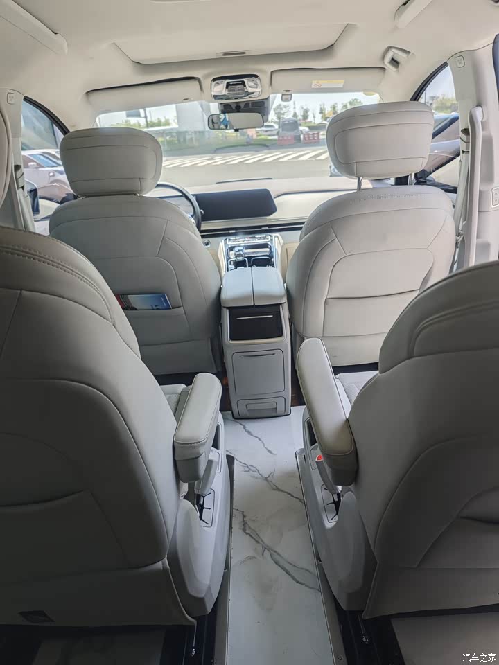 它的空间可谓是一个小房间,车身有5米2的样子,车内为5门7座布局,第三排的座椅是加宽加厚的,第二排独立座椅还有腿托,靠背都可调节,乘坐的舒适度很高。