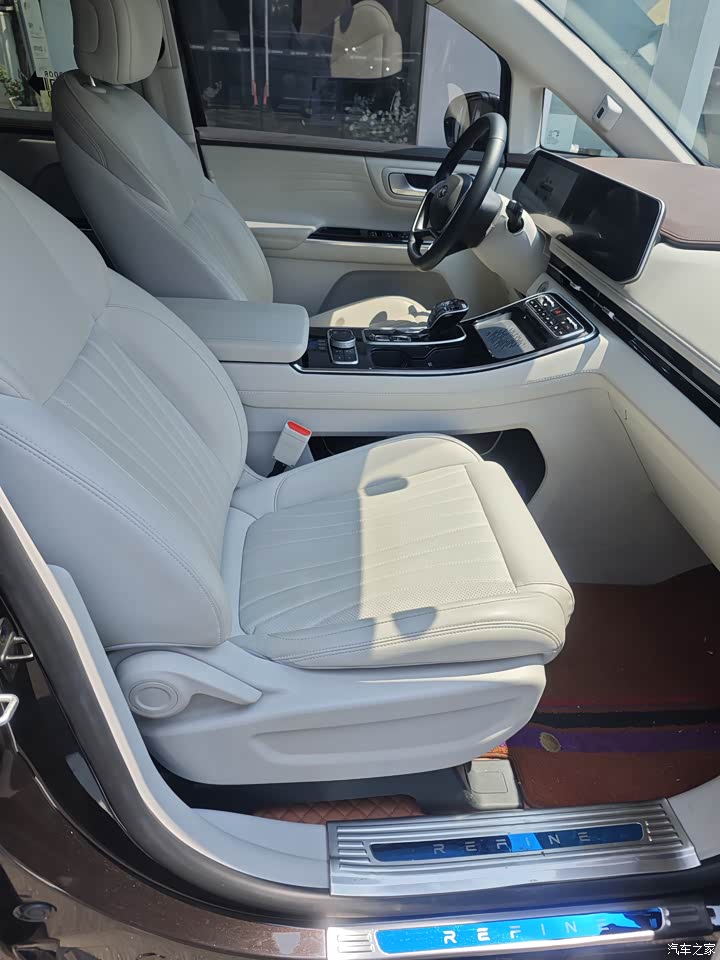 销售介绍的是,这款江淮瑞风RF8PHEV旗舰型内饰采用双环抱港湾布局,兼具科技感与舒适感,里面有好几种颜色可以选,不管啥颜色都呈现出国风意境,而且座椅是2+2+3的布局,第二排是独立的,可以电动调节,还有加热通风按摩的功能,可谓舒适感相当炸裂。