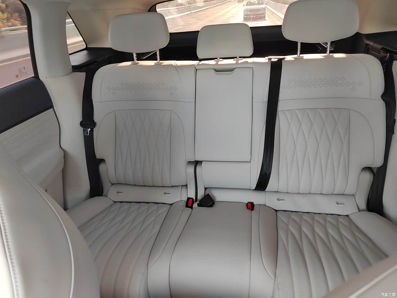 内饰设计风格主流,浅色内饰比较偏家居,温馨舒适。前排标配座椅通风、按摩、加热,后排仅提供加热,但可以电动调节前后移动,靠背角度,在后备箱有一键放倒和还原按钮。