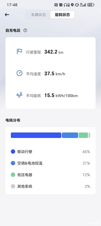 武汉市的,夏季温度35度以上,市区综合能耗15KWh左右,高速能耗20-22(四个人 行李箱满载),刚提到车一周就搞了个武汉-西安-延安-壶口-老君山-武汉的自驾游,高速上充满电到电量显示为0大概跑了360公里(武汉硚口区-福银高速钟岗服务区,加上一个出发前一天下班跑的20公里)。市区的能耗差不多在15-16kwh左右。充电速度很快,自驾游出去遇到的充电桩都能运行在80-180kw之间,没有专门去找超充桩测试,半小时就能充满,上个服务区休息下就够了。