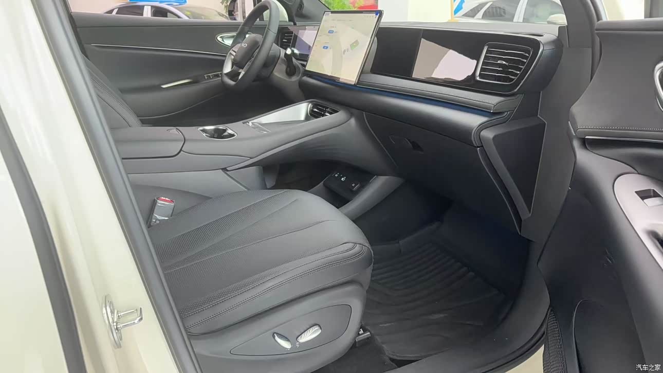 坐进车内,控屏瞬间抓住眼球,车机系统流畅度优秀,APP远程控制。 材质:中控台大面积软质包,质感远超同级合资车。 座椅:仿皮材质,填充柔软,长途驾驶舒适性不错。