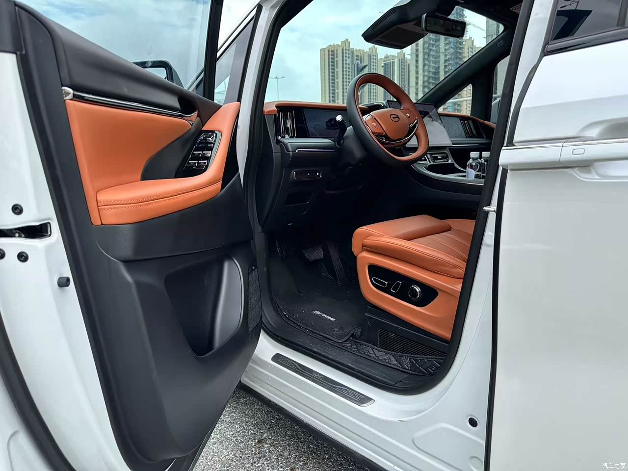 我自己开了家小公司,平时要接客户,周末还得带老婆孩子去周边玩,原来的轿车接客户显得不够大气,装家人和行李又费劲,换台 MPV 成了刚需。对比了奥德赛和腾势 D9,上周抽时间去试了传祺向往 M8 乾菎,特意模拟了接客户和带家人的场景,今天跟大家聊聊真实感受。 先说说商务接待的体验 —— 前脸看着特别大气,镀铬饰条不浮夸,LED 大灯亮起来很精神,客户一上车就说 “这台车看着挺高级”。第二排的航空座椅太加分了,带电动调节和加热功能,我让客户试了试,他把座椅调至半躺,说 “比坐飞机经济舱舒服多了”,而且车内隔音很好,高速上聊业务不用扯着嗓子,这点对商务接待太重要了。 家用方面也没让人失望,周末带老婆孩子试了段近郊的路,第三排空间比我想象的大,我 182cm 的身高坐进去,膝盖离前排有一拳距离,孩子在后排蹦蹦跳跳也不挤。后备箱塞了孩子的玩具箱、老婆的野餐垫和两个行李箱,还有富余空间,比原来的轿车能装太多了。