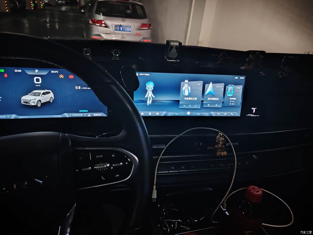 内饰也非常不错的,双联屏,简洁大方豪华,用起来很方便,8155芯片完全够用了,一边播放音乐一边导航同样丝滑,