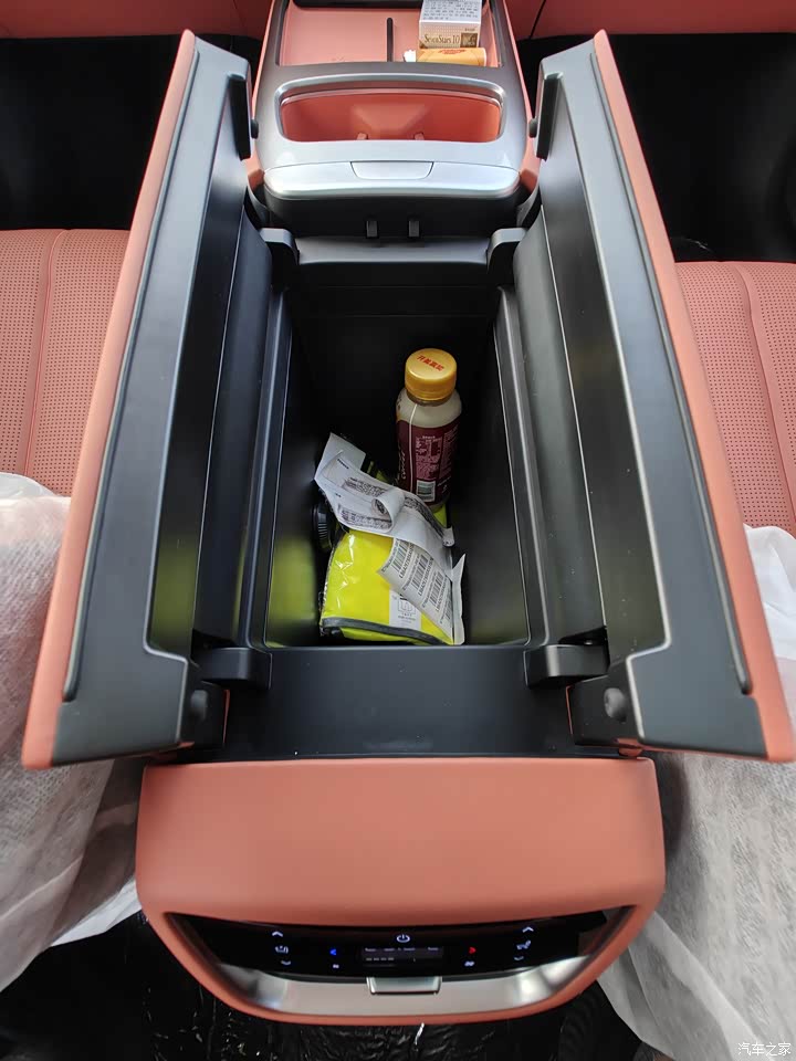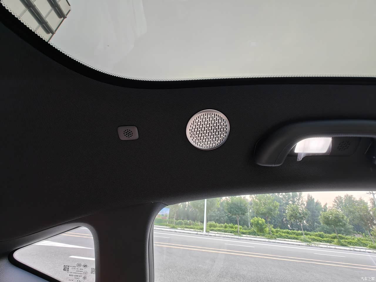 电车的空间自然是不用说的,没有传动轴的影响,后排可以纯平,加上L07 2米9的轴距后排空间非常客观。由于电机取代了传动驱动模式,原本变速箱换挡的位置有个超大的储物空间。唯独全景天幕没有配备遮阳帘这点太闹心了。