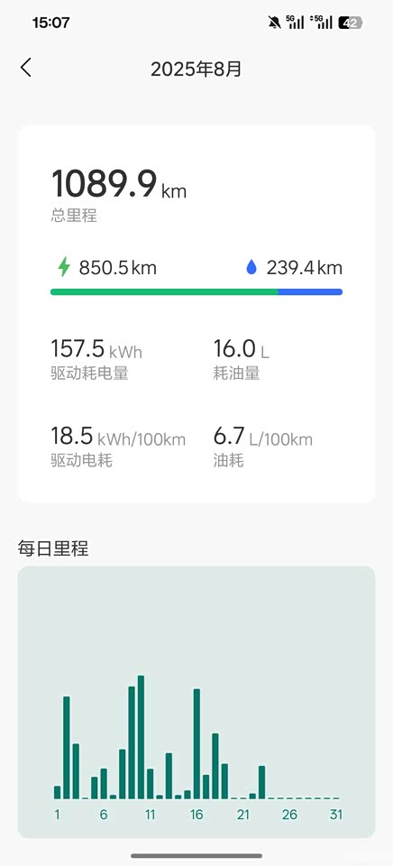 一张两个月左右的用车记录大家可以参考。作为这么大尺寸的SUV,这个耗油量还是挺令人满意的。但是美中不足的是,增程虽然能解决一部分用电的里程焦虑,但是感觉电池容量还是能有进步的空间,基本上两天左右再充一次电,纯电续航200左右不是那么理想,所以 4.5 星是给他还不错的油耗和稍微令人有些担心的纯电续航。