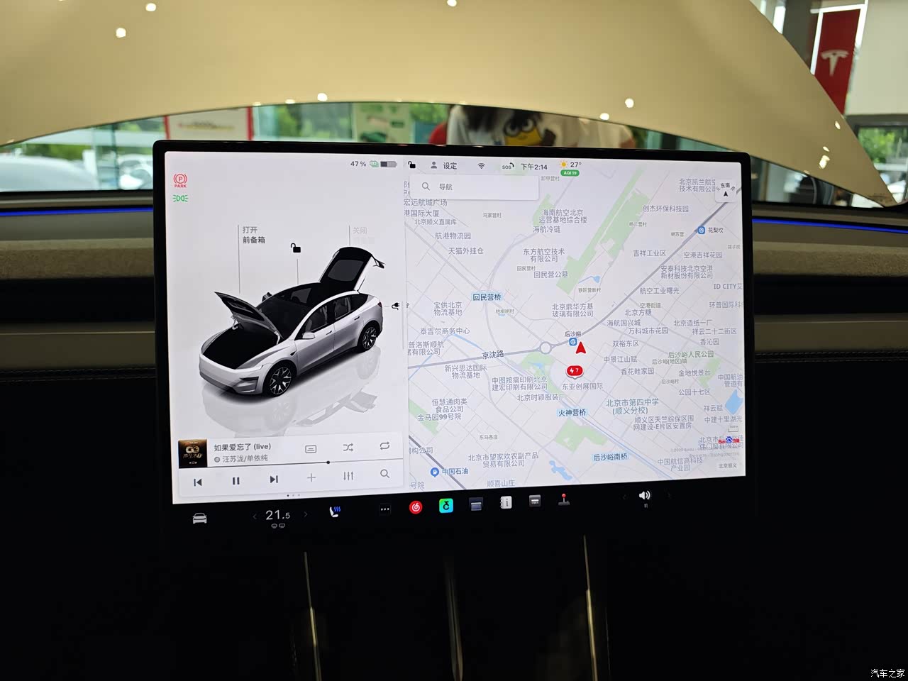 车里边所有娱乐设施都集成这个大屏幕了,包括换档都是通过屏幕换挡,感受真是难以点评,后期能试驾了再反馈。