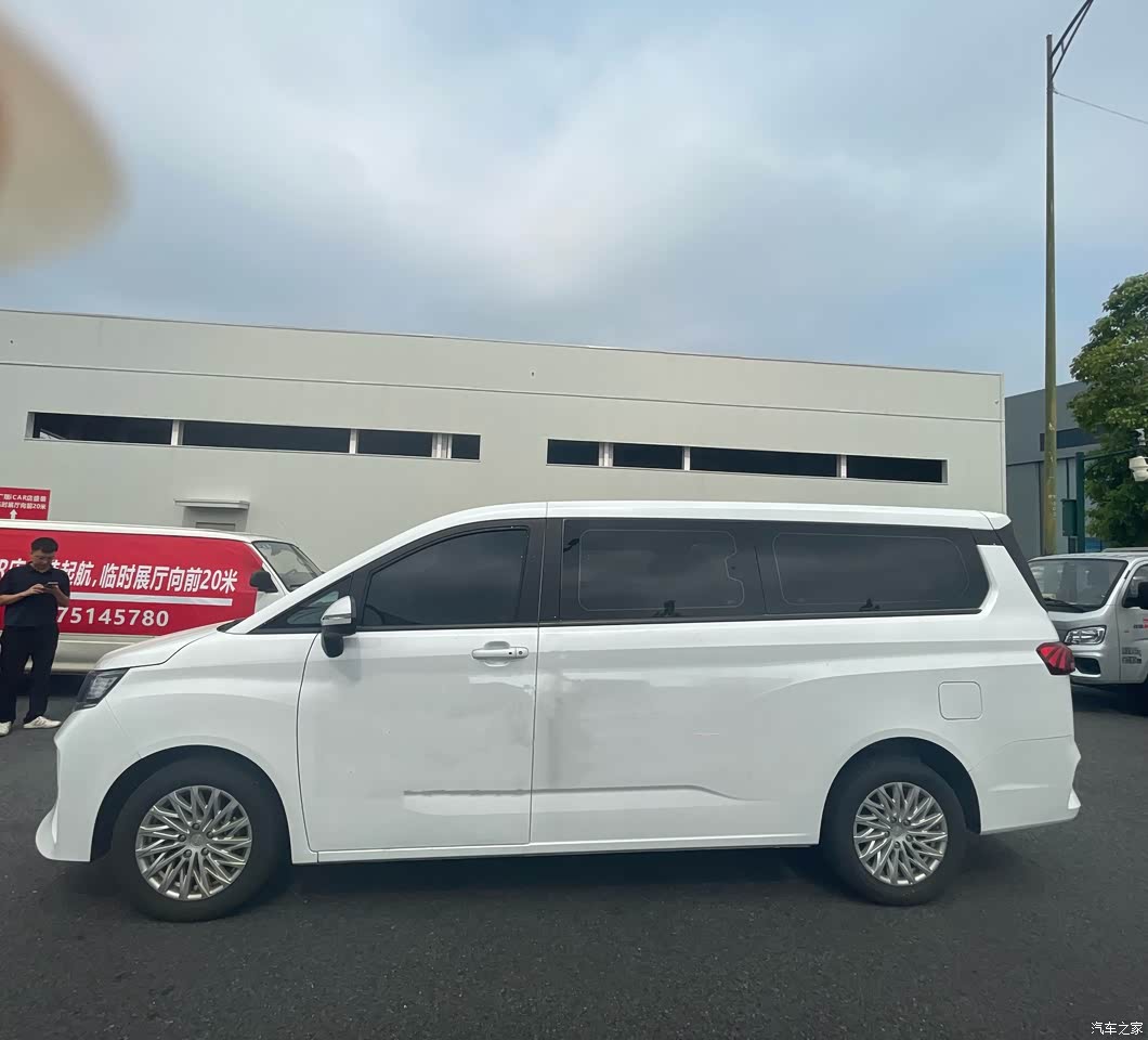 外观整体挺大气,前中网搭配宽镀铬条挺有气势,卤素大灯看着精神。车身侧面四四方方,腰线带点流线感,车门又大又宽,上下车和搬东西都方便。我试驾的这个车子是白色的,这个颜色我和媳妇都看中了。