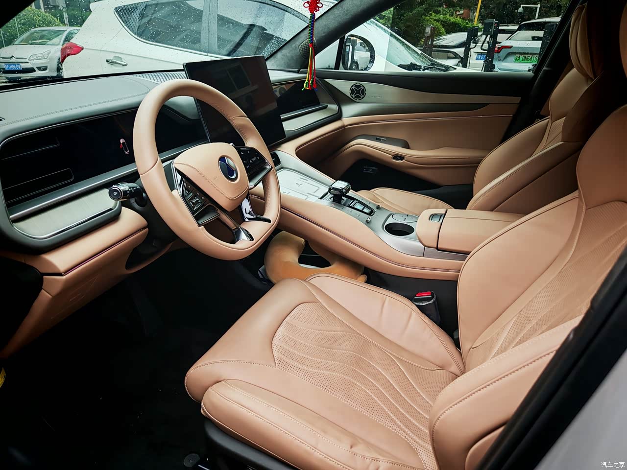 内饰没的说,质感甚至超越了部分价格更高的豪华品牌车型。座椅都是全粒面高级NAPPA真皮,比有些部分NAPPA强多了、麂皮绒顶棚、环保真木饰板、真铝饰件,这个座舱环境非常NICE。帝瓦雷音响音质非常好,低音深沉有力,高音清晰细腻。双50W带风冷无线充电非常实用,上车就充电,手机续航无忧。前排座椅支持多向电动调节,并配备通风、加热、按摩功能,副驾驶位也常有“女王腿托”。后排座椅也提供了通风、加热、按摩以及靠背角度电动调节功能,确保了长途乘坐的舒适性。特别要夸一夸的是,全景天幕有电动遮阳帘的设计,避免了夏日暴晒的烦恼,这点确实不错。车上随处可及的储物空间,门板、中控台下方的镂空储物格等也都相当的实用。