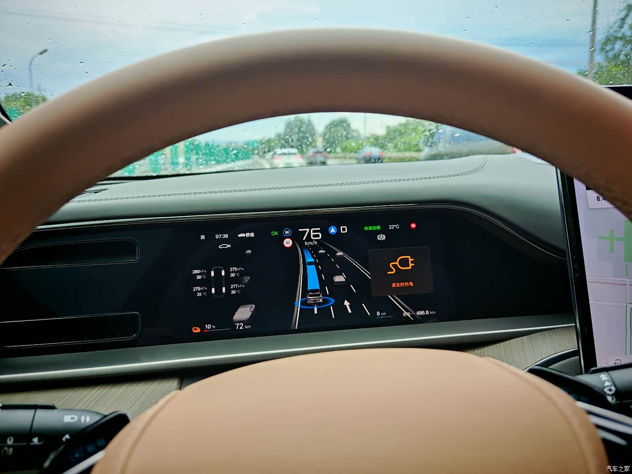 买的是智驾版,带双激光雷达,高速NOA变道超车果断丝滑,隧道内居中稳定,拥堵跟车舒缓。城市道路应对加塞、行人、非机动车从容,红绿灯启停平稳。经过多次OTA以后,智驾越来越能打,现在快速路基本都用高快领航辅助,特别丝滑,下匝道也比以前平顺多了,越来越像个老司机,整体来说比较稳重,不激进。另外,最满意的是泊车辅助,代客泊车非常实用,屡试不爽。现在迪子还给兜底,放心用。偶尔自己泊车都感觉不太会了。