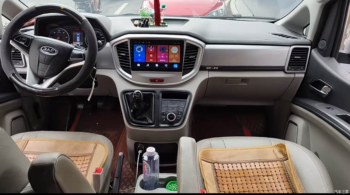 内饰没啥花里胡哨的,中控台硬塑料为主,摸起来质感一般,但按键布局清楚,空调旋钮、收音机按钮一摸就着,开车时不用低头看。座椅是仿皮的,耐磨耐脏,泼上点矿泉水一擦就干净,